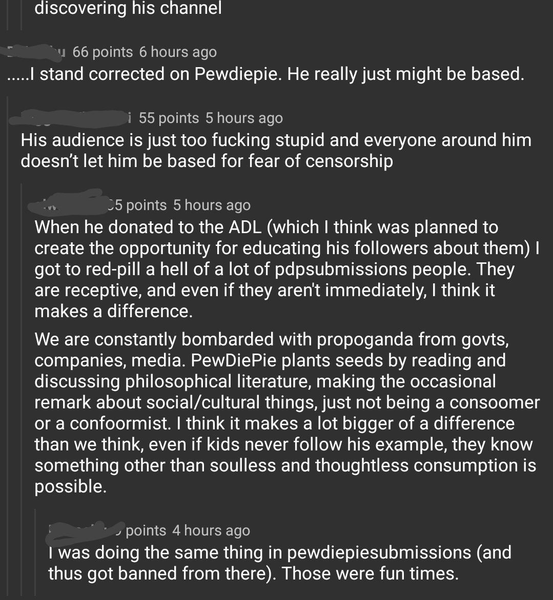 So anyway here are actual Nazis talking about how PewDiePie is useful to them. Just gonna save these for the next time someone tries to argue otherwise