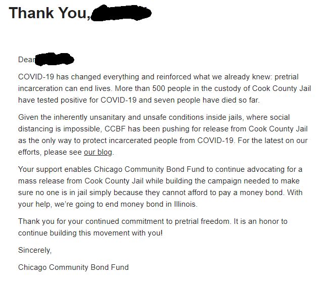 Hey all. I've just donated the entirety of my May Patreon payout to the Chicago Community Bond Fund in support of protesters who have been arrested and others. It's not a lot but but it's what I have.