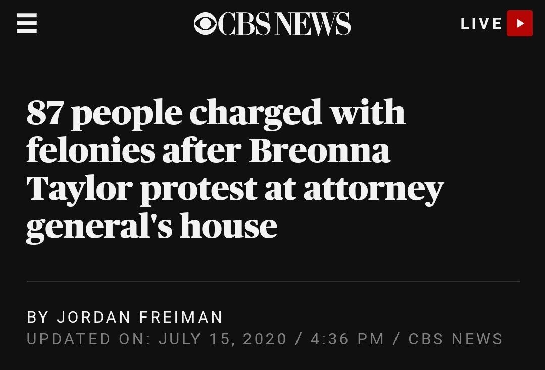 Imagine slapping 87 felony charges on random ass people and not the dudes who killed Breonna Taylor in her sleep