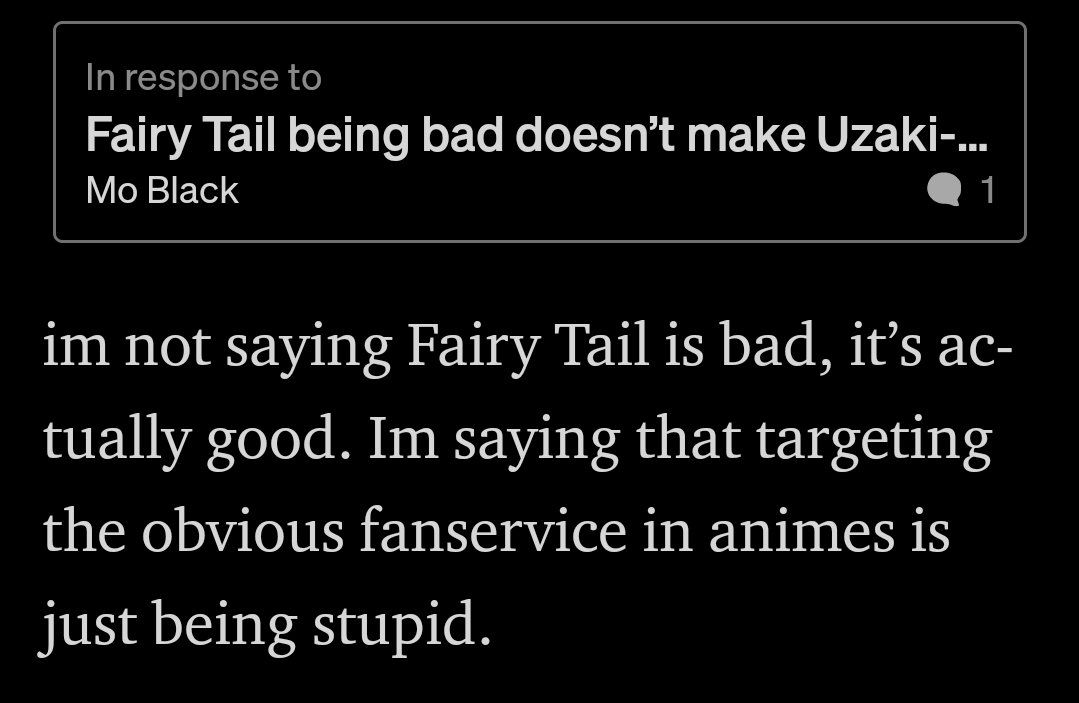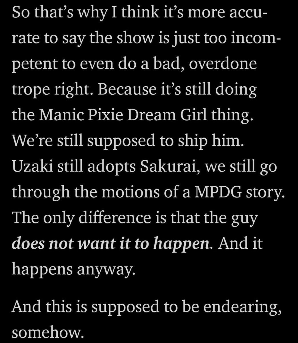 It's also not true that my problem with Uzaki-chan is that I don't like the fan service. Again the essay states as such