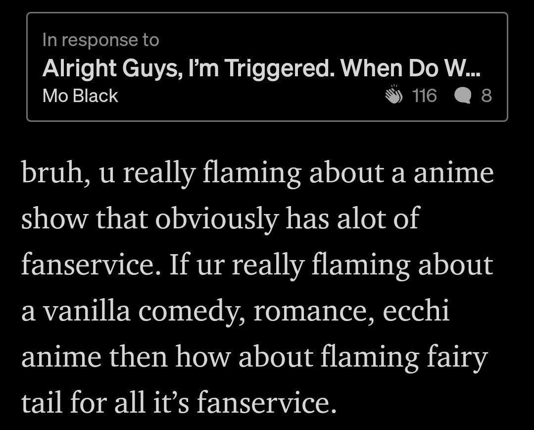 He says I've clearly never seen ecchi, but in the article I basically admit to enjoying hentai. It was this paragraph