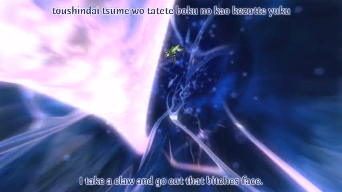 So Mao says "[Suzaku is] just a child who wants to wash the blood off your hands" yeah by SPILLING MORE BLOOD IN THE NAME OF WHITE SUPREMACY???? WHAT?????? EVEN DIAGETICALLY IT MAKES NO SENSE