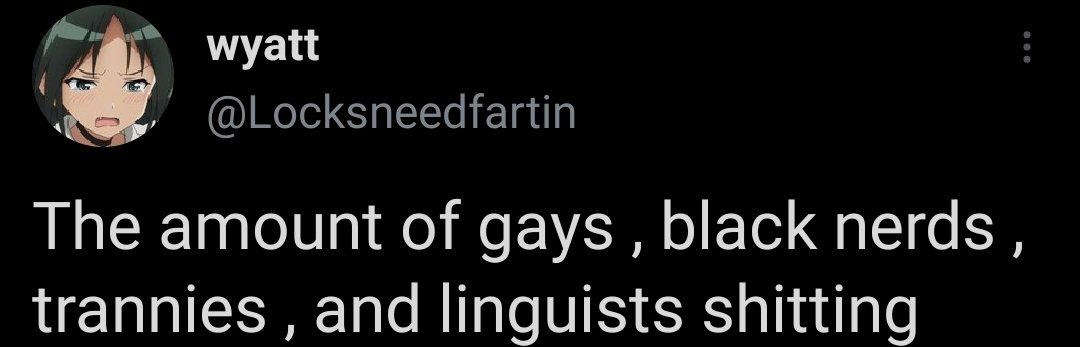 cw // tr***y/transphobic slurs And this is the glorious result. A solid couple minutes of laughter. I think what I love most is that he considers linguists on par with like black people and trans people. What did Noam Chomsky ever do to you?? 😂😂
