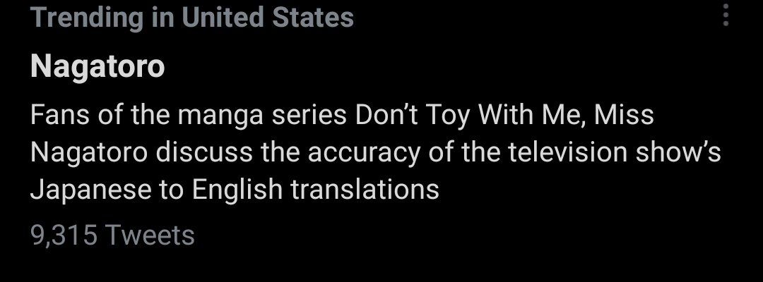 1. Oh my Nagatoro is trending because of that stupid thread 😂😭 The thread devolves into the person actively trying to trigger dysphoria in trans people, so take this as the content warning that should have been in this Twitter description Read my thread instead?