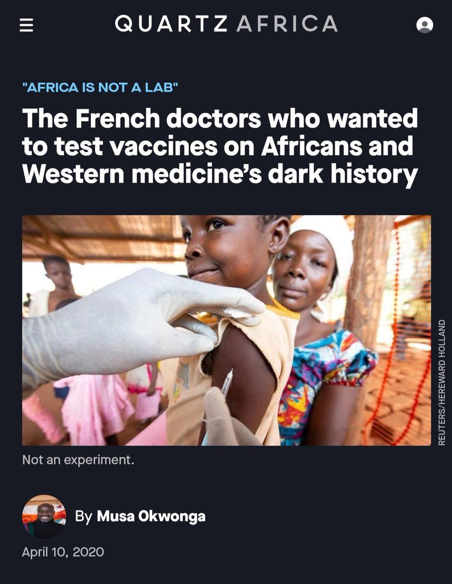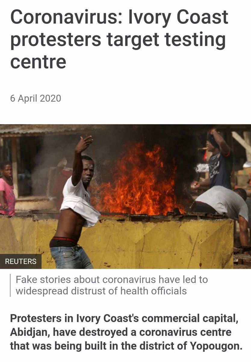 So some famous French doctor or other said this last year and it led in part to riots in Côte d'Ivoire. People became convinced that like, COVID-19 health stations were a neocolonial plot to subject Africans to untested and dangerous experimental drugs @hawtology/1387467899183550473