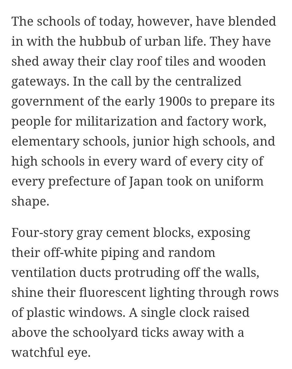 @The_Deadweight @AnimeContexts Sorta, but I mean the Japanese government on a national level built a good section of the schools and it built the exact same school every time mythographers.wordpress.com/2019/03/18/why-all-japanese-public-schools-look-the-same/