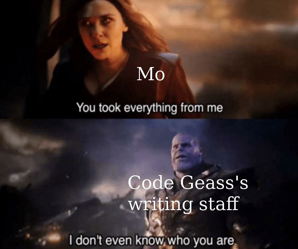 Interesting thing about Code Geass is that even though my complaints turned into this series of reaction threads, I didn't actually hate every last bit of it. In fact, the times where I saw the show that so many other people enjoyed make me the most frustrated