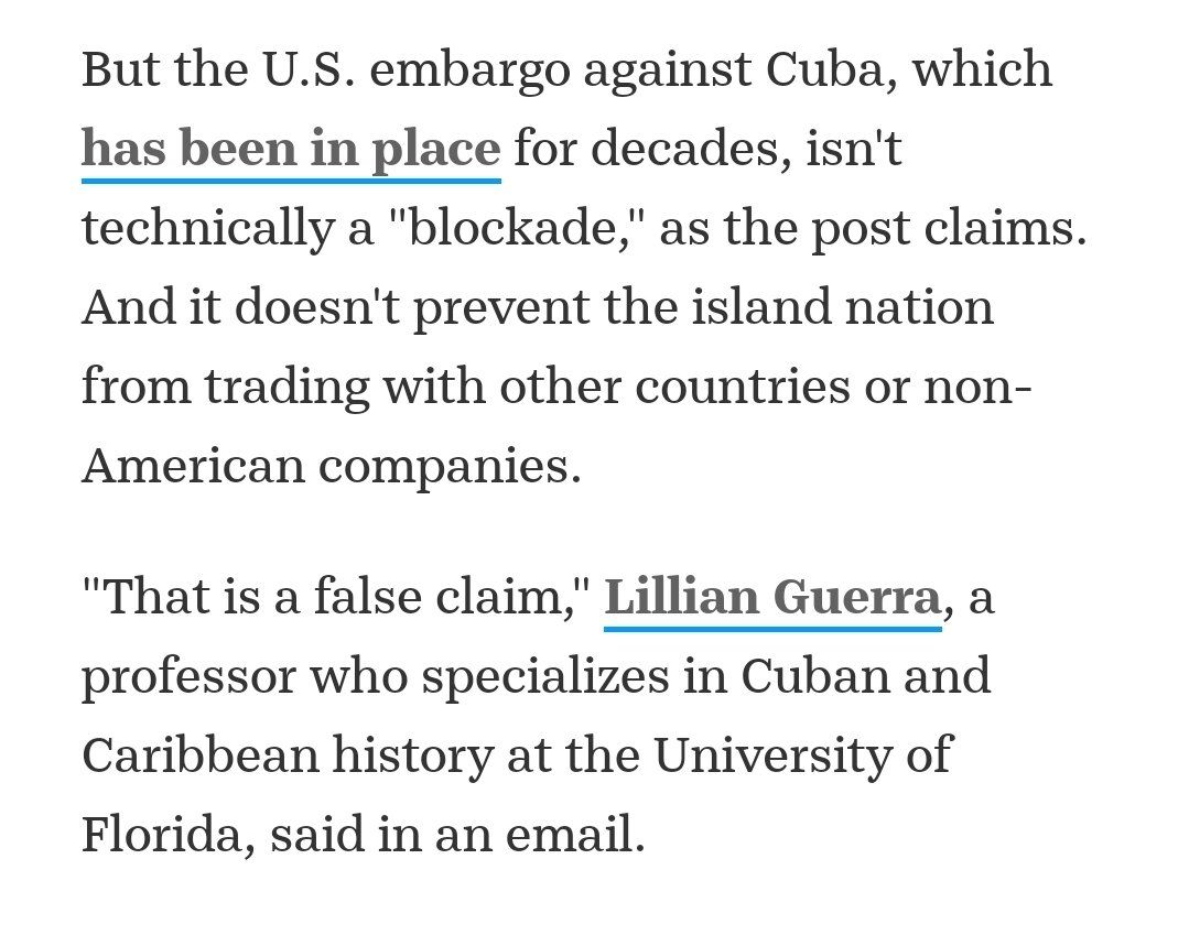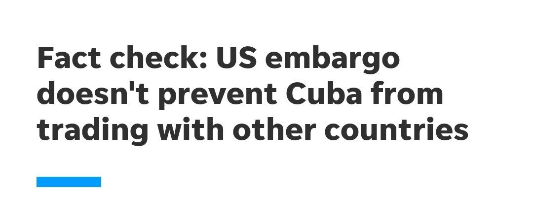 So, yes, technically, on paper, the US economic embargo on Cuba 1. only applies to US companies 2. allows Cuba to have other trade partners 3. has exemptions for food and medicine 4. is not a blockade But none of this is true in practice
