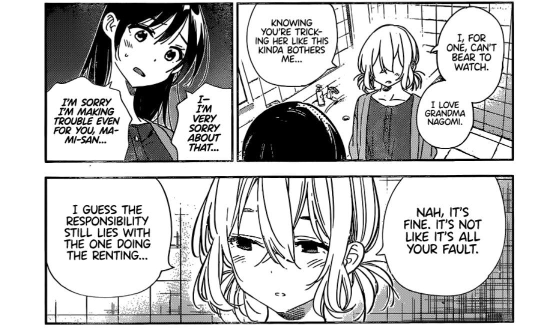 This is probably the thing I love most about KanoKari, okay? She has to be wrong for this to work, but she's not and the writer DOESN'T SEEM TO KNOW. Kazuya didn't have to emotionally manipulate Chizuru until now. That was a choice you made 😭😭