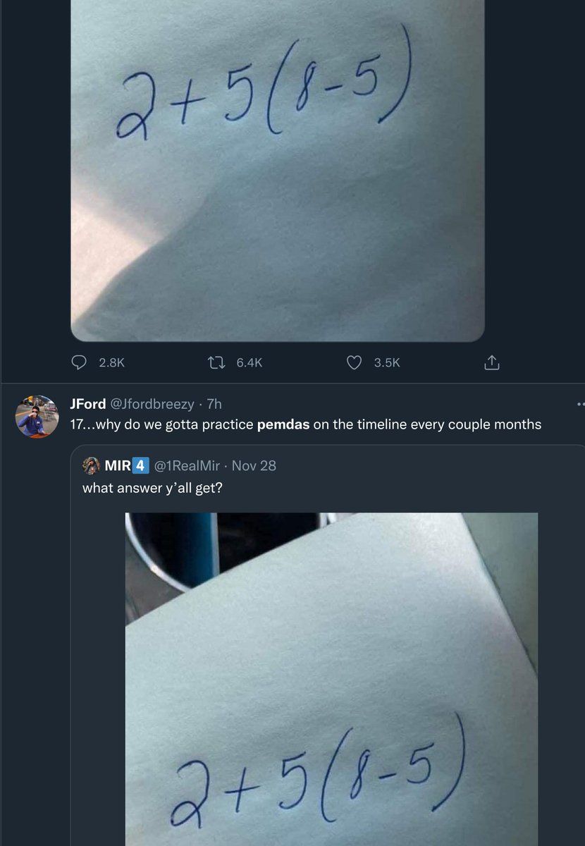 If this is some bullshit 6th grade math question that always trends on here every three months I will literally jump out of my window